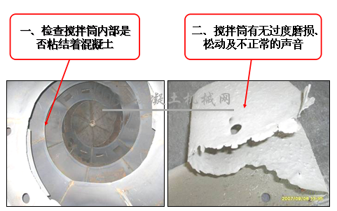 1、搅拌筒滚道:检查有无过度磨损及损伤