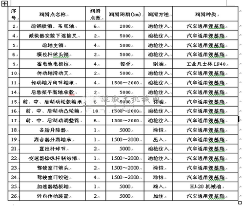 初用500小时或行驶10000公里后,进行换油;其后每使用六个月或每行驶20000公后,再进行换油(以先到为准) 油料型号:85W-90(GL-5)齿轮油