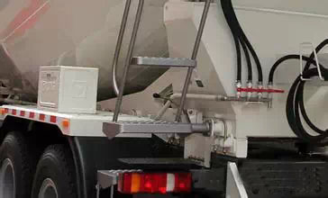 ⑶ 将卸料槽旋转到与搅拌筒垂直的角度,并用锁止机构进行紧固,如车上有辅助卸料槽的也将固定牢固,以防发生意外。